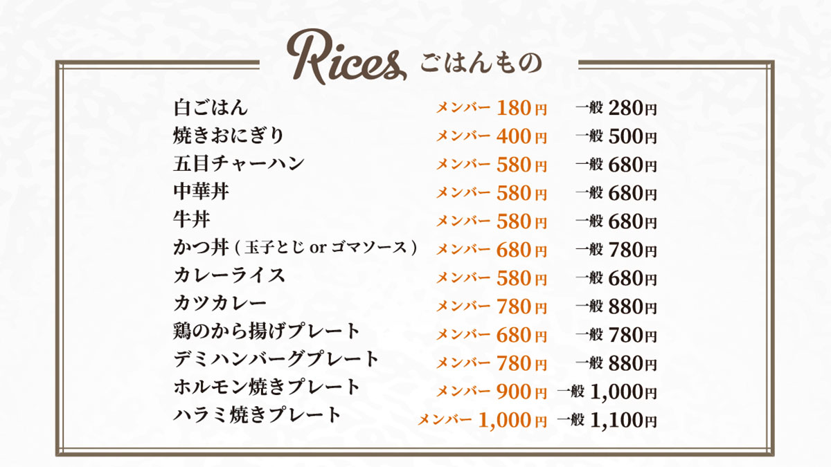 会員メンバー様には特別価格でメニューを提供いたします。