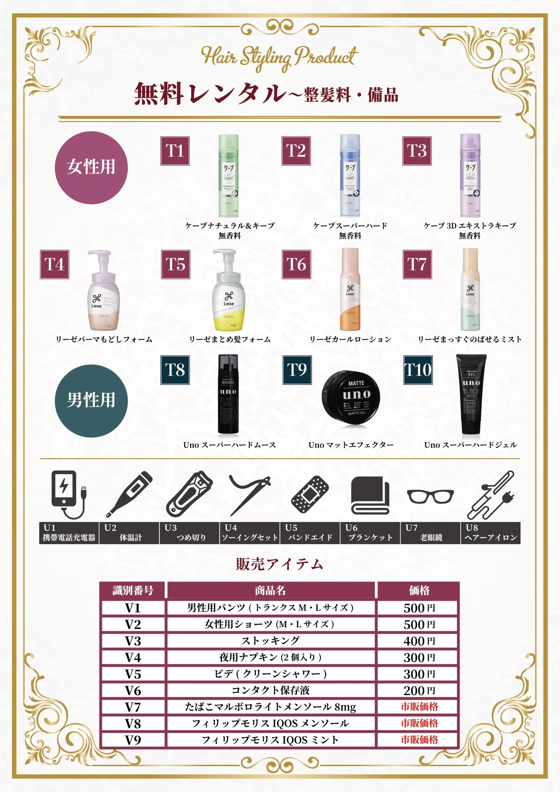 ヘアケアやボディケア商品など、充実のアメニティを無料貸出中です。
